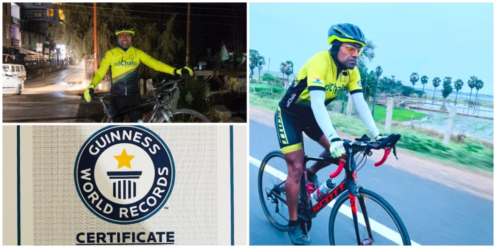 Lt Col Pannu created a second record when he cycled the 5,942-km-long ‘Golden Quadrilateral’ route in 14 days, 23 hours and 52 minutes. The corridor connects Delhi, Mumbai, Chennai and Kolkata. The event started on 16 October 2020 from India Gate in New Delhi.